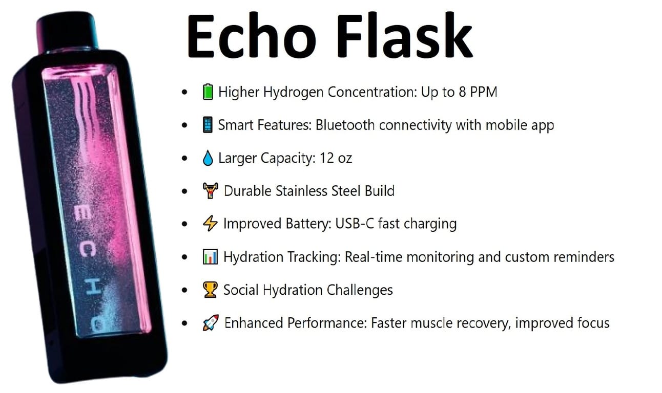 Developed by Echo Technologies LLC, a leader in hydrogen water innovation, the Echo Flask is more than just a bottle—it’s a performance-enhancing health tool that supports long-term recovery, muscle optimization, and improved athletic function.